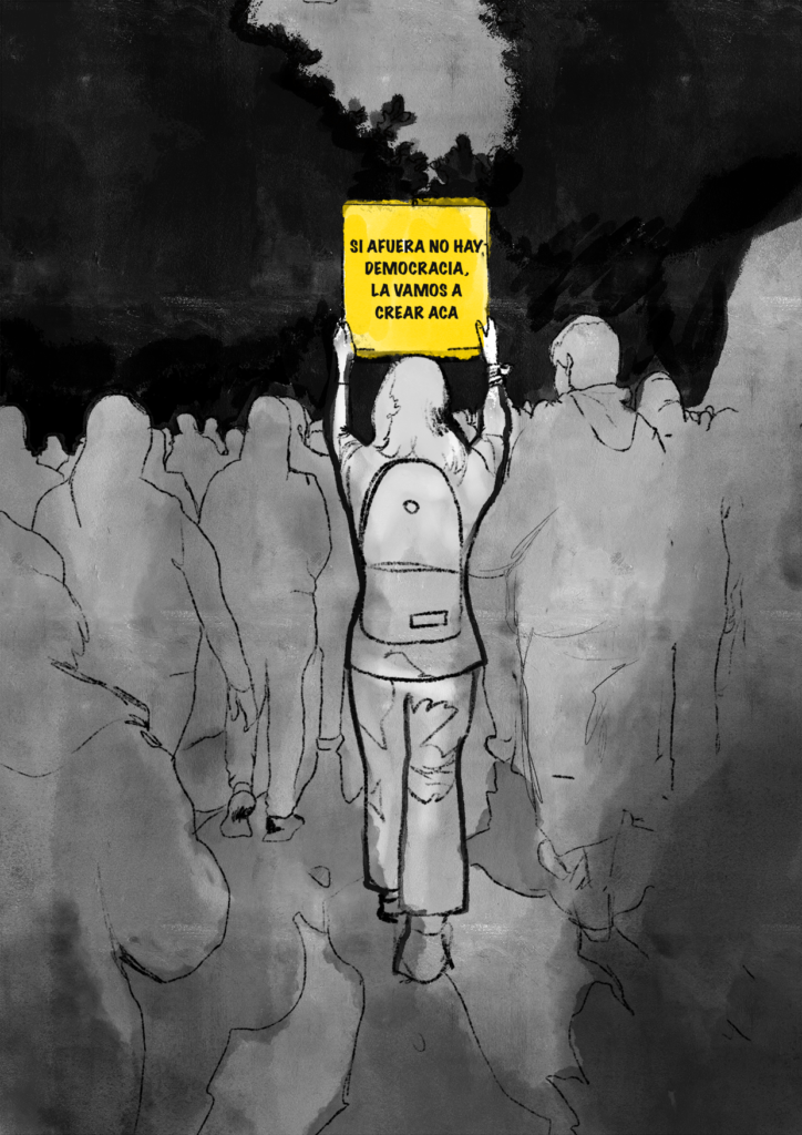 These were my contributions. They were done in 2023, and took as reference images from their assemblies and peaceful protests.